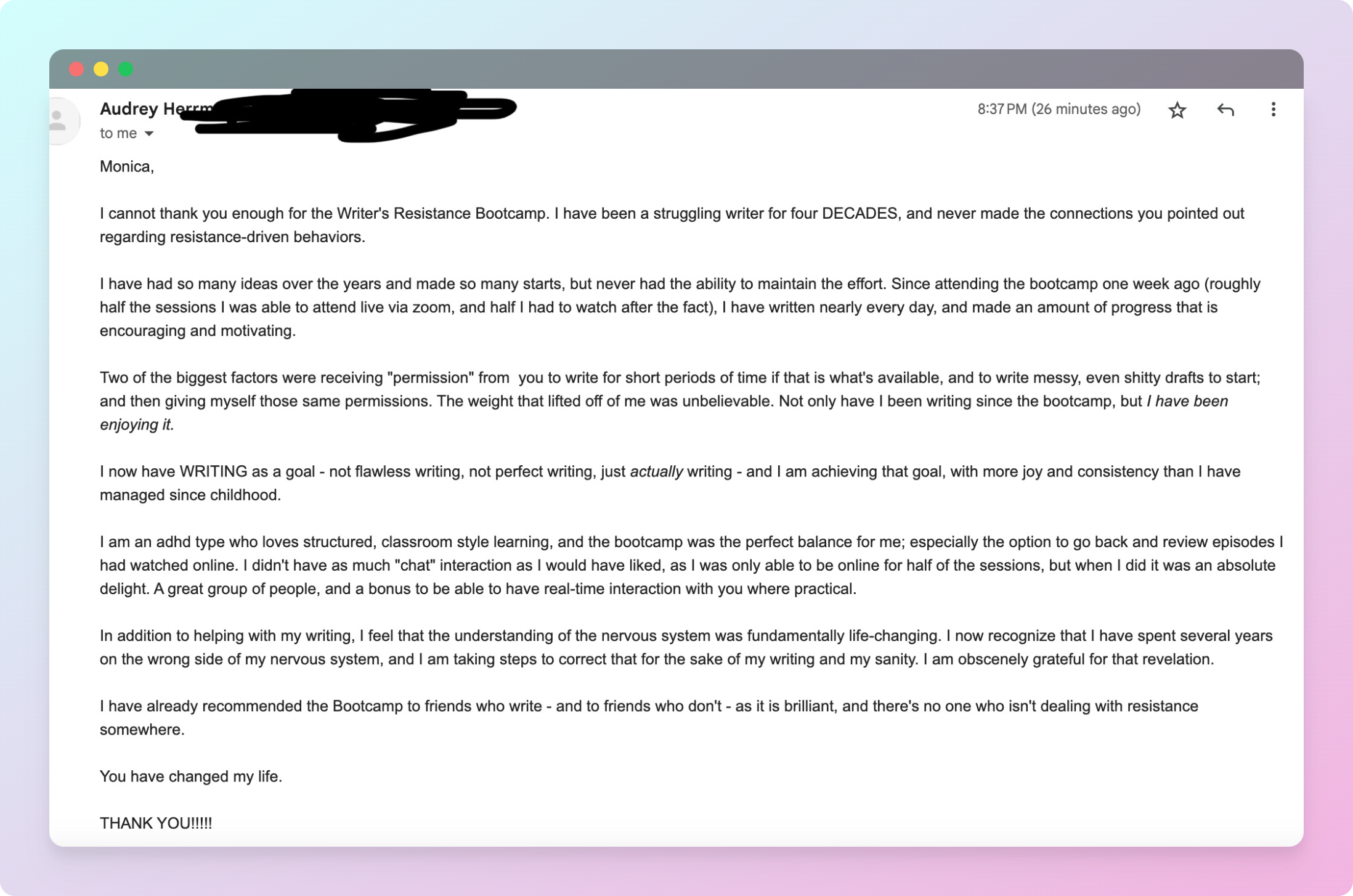 I teach the brain science around resistance & give you practical tools for showing up, and making a consistent writing habit. One that actually works.